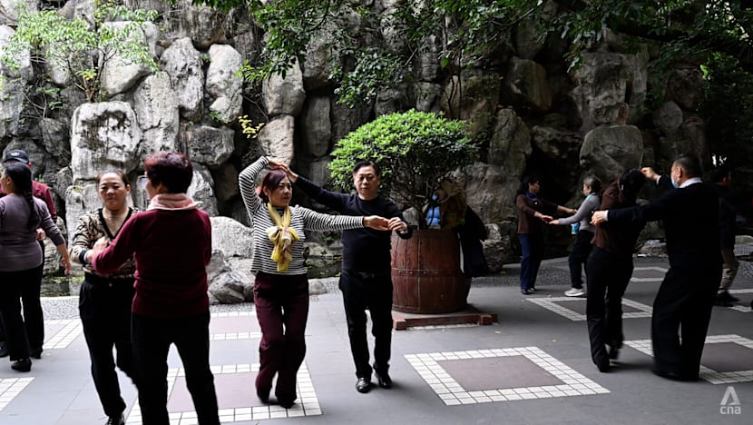 Elsewhere in the park, teenagers in elaborate cosplay pose among fields of chrysanthemum flowers while elders practise slow ballroom steps to nostalgic Mandarin songs.