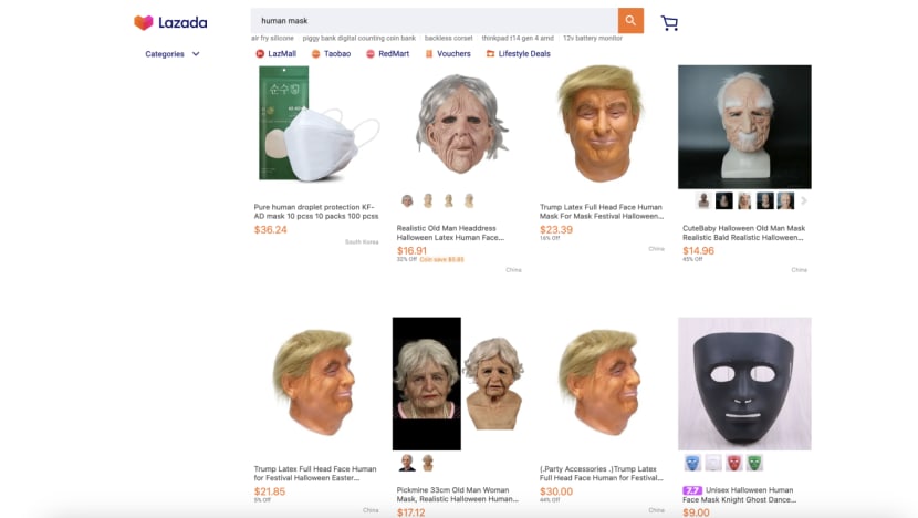 E-commerce platforms headquartered in Singapore also offer these masks. Checks by this journalist found at least 60 different listings on Lazada and Shopee, most shipped from China. The number of sales for each listing was largely under 10.