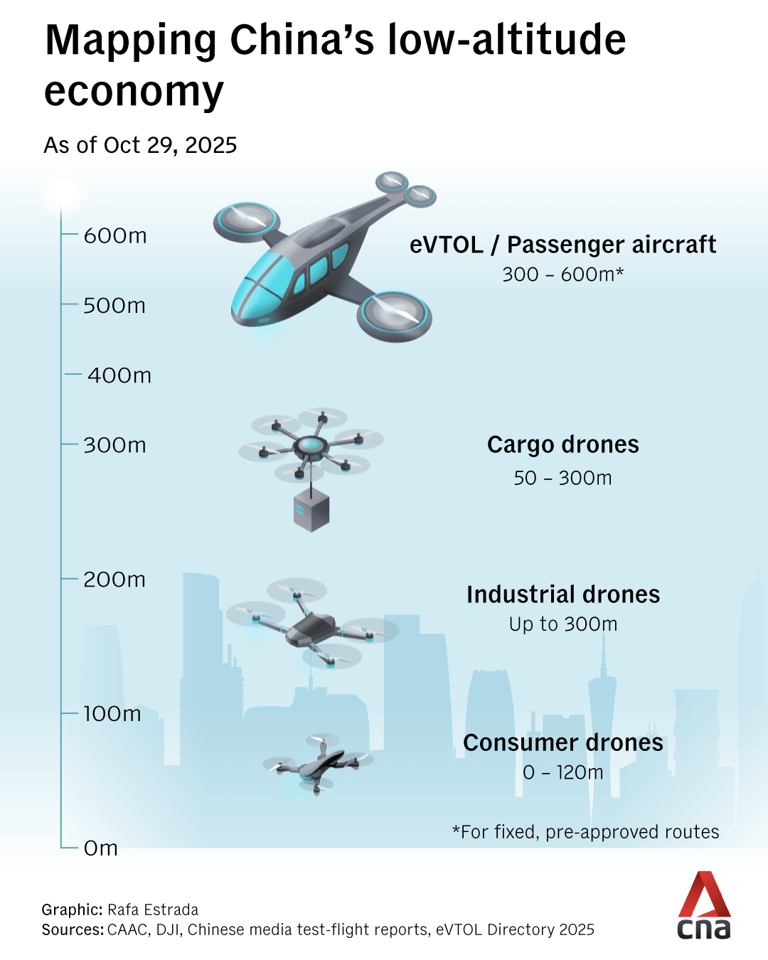 Success in the low-altitude economy - and realising its touted trillions in commercial potential - could help cushion China against domestic headwinds, from sluggish consumer spending and rising youth unemployment to longer-term demographic strains.