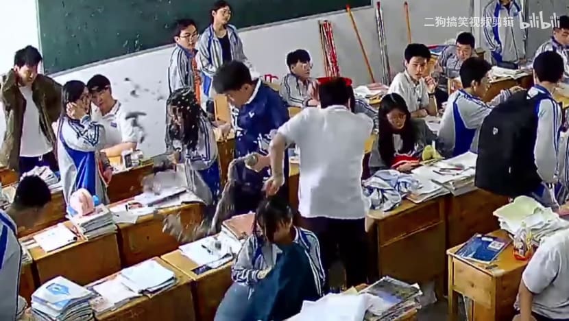 One video reposted on Bilibili showed the moment a bottle of “stinky water” exploded in a classroom.