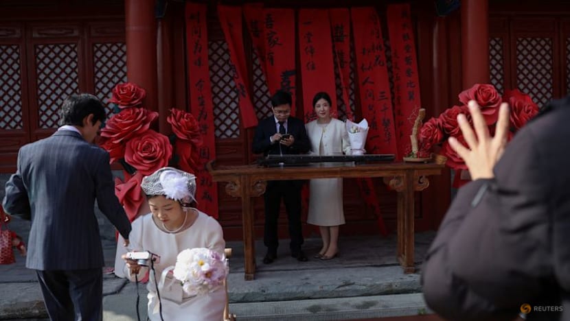 Others are experimenting with different kinds of wedding perks: themed mass ceremonies, vouchers for wedding photography, honeymoon discounts, and even holding vow ceremonies at nightclubs - all deployed in the hope of nudging up marriage registrations and, ultimately, birth rates.