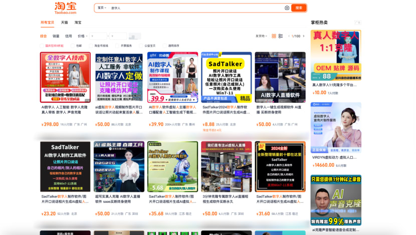 Checks by CNA on various Chinese platforms showed surprisingly affordable costs of creating digital human avatars, although the quality of technology has varied, ranging from hyper realistic to cartoon animations.