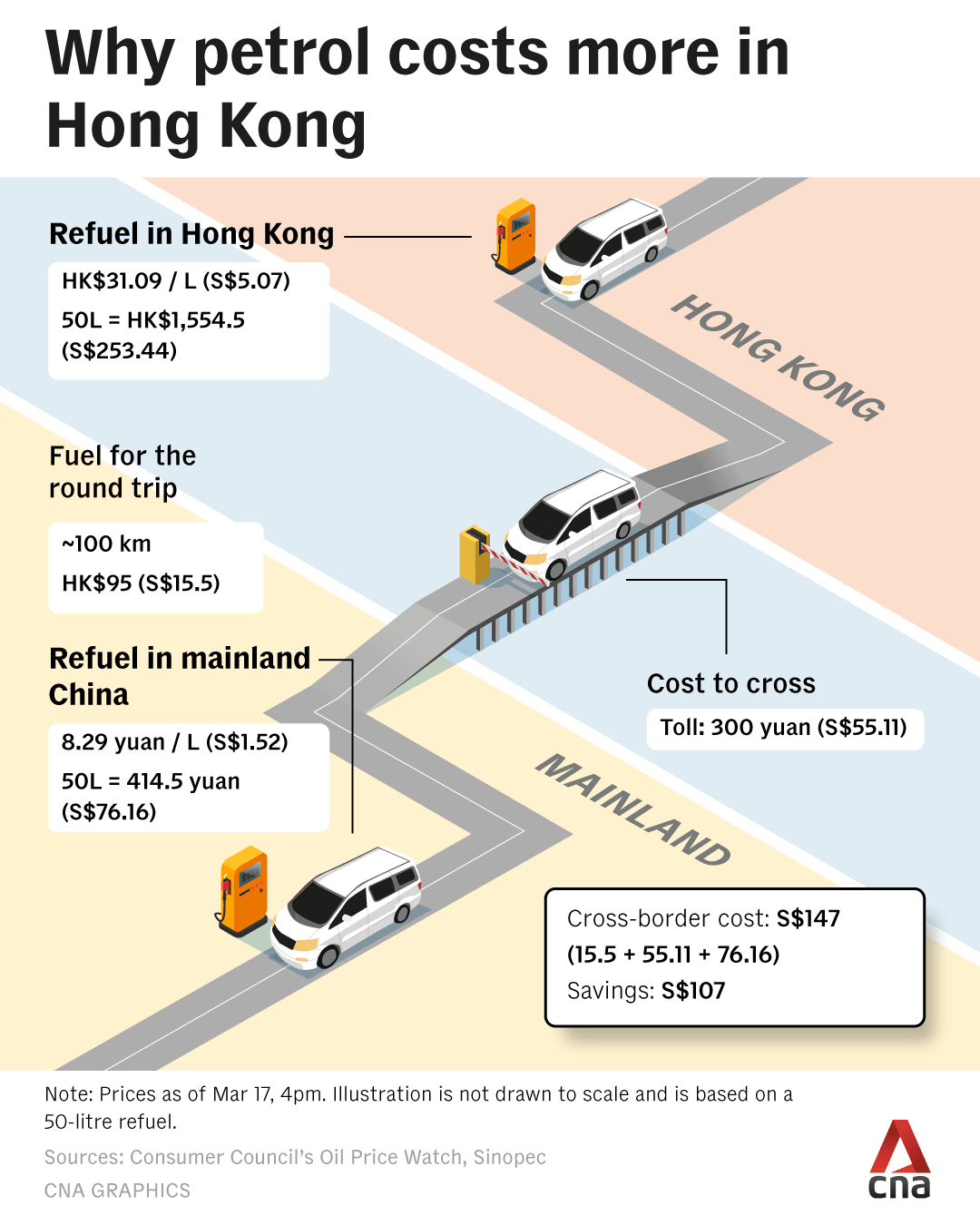 As conflict in the Middle East drives up global fuel prices, Hong Kong drivers are looking north for relief - but will the savings add up?