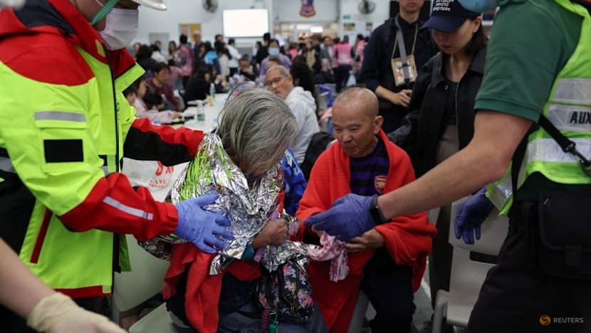 Firefighters in Hong Kong work as efforts are underway to extinguish flames engulfing bamboo scaffolding across multiple buildings at the Wang Fuk Court housing estate in Tai Po on Nov 26, 2025. (Photo: Reuters/Tyrone Siu)