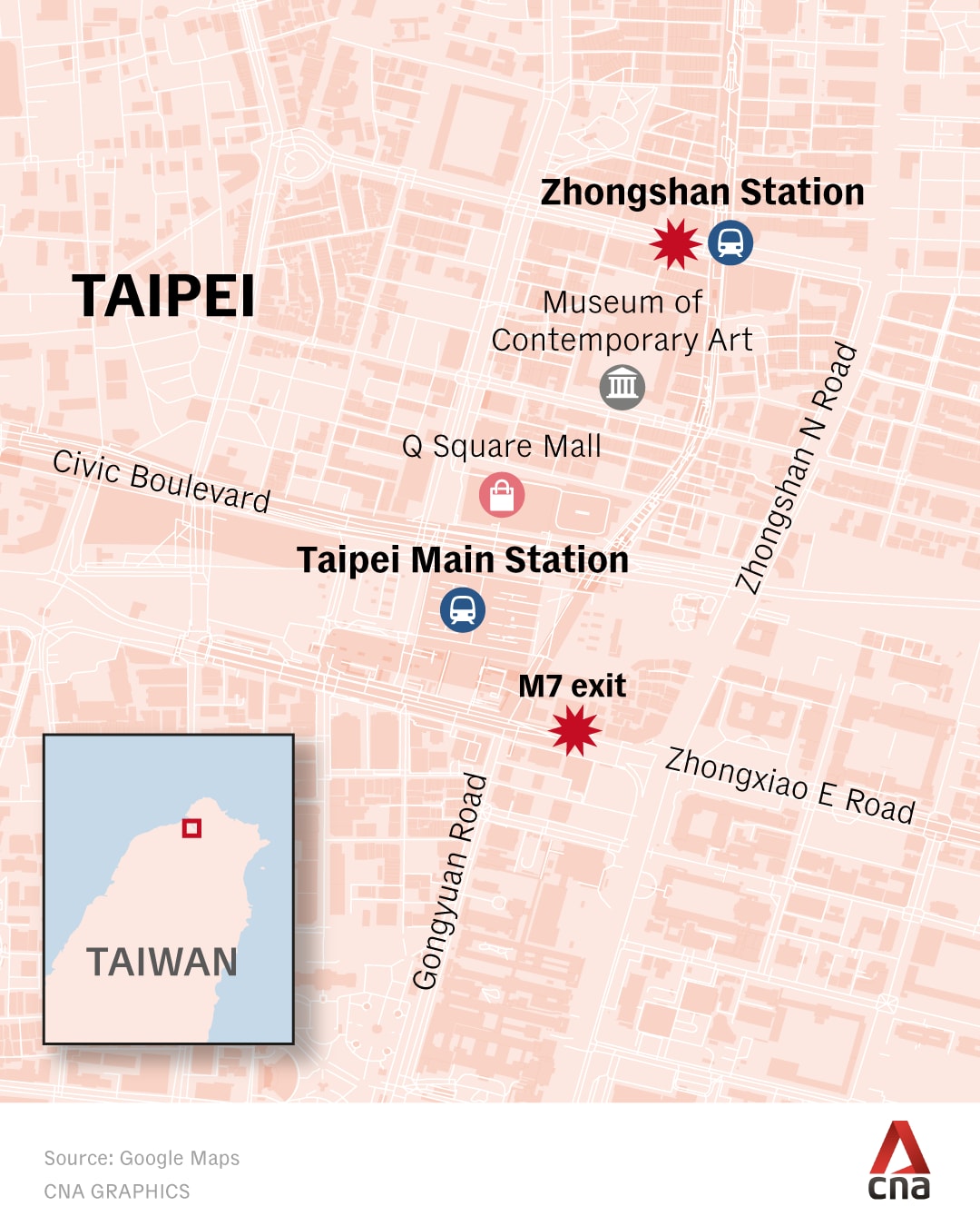 Taiwan's Premier Cho Jung-tai said the attacks at Taipei Main Station and Zhongshan Station were "a deliberate act", although the motive was not immediately clear.