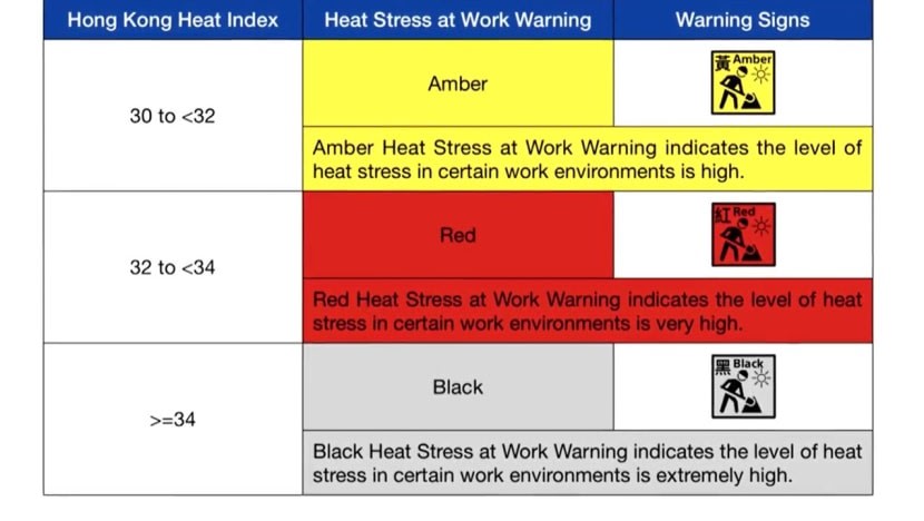 Di Hong Kong, yang baru saja mengalami musim panas terburuk sepanjang sejarah, Departemen Tenaga Kerja tahun ini merilis pedoman anti heatstroke berdasarkan sistem peringatan tiga tingkat.