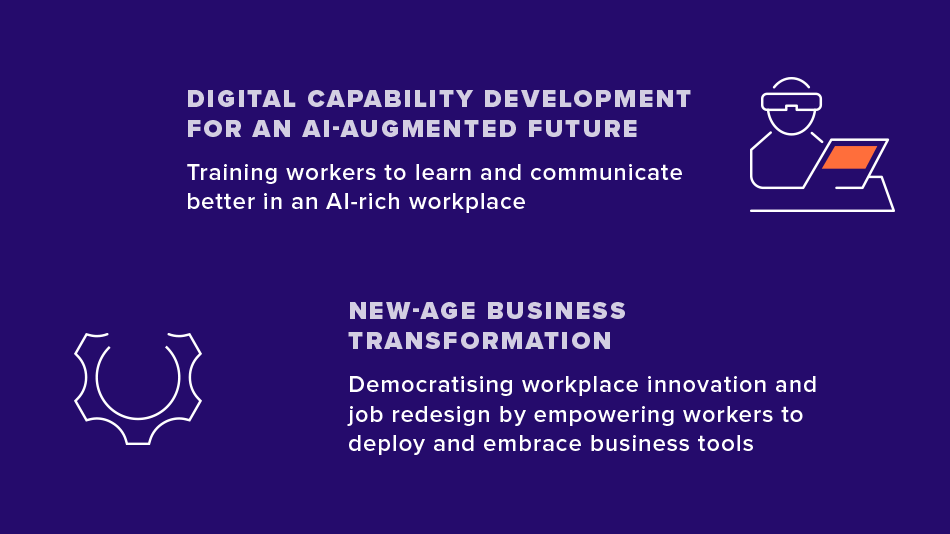 The third and final track is about new-age business transformation. Mr Tan explained that business transformation leads to job redesign, which requires worker upskilling. He referred to a study by IAL and several universities, called Digital Futures of Work, which found that workers who have more autonomy in their jobs are more likely to embrace digital tools – and thus engage in bottom-up, democratised innovation in the workplace.