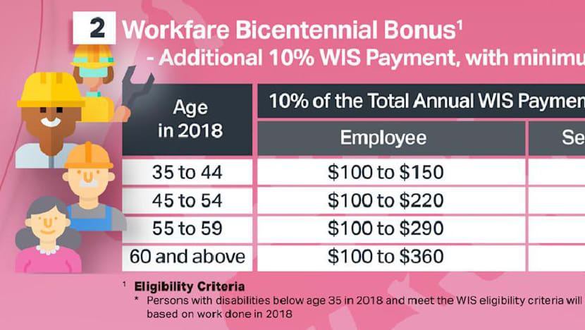 Meanwhile, those with disabilities and aged below 35 in 2018 who are eligible for the WIS will receive between S$100 and S$150.