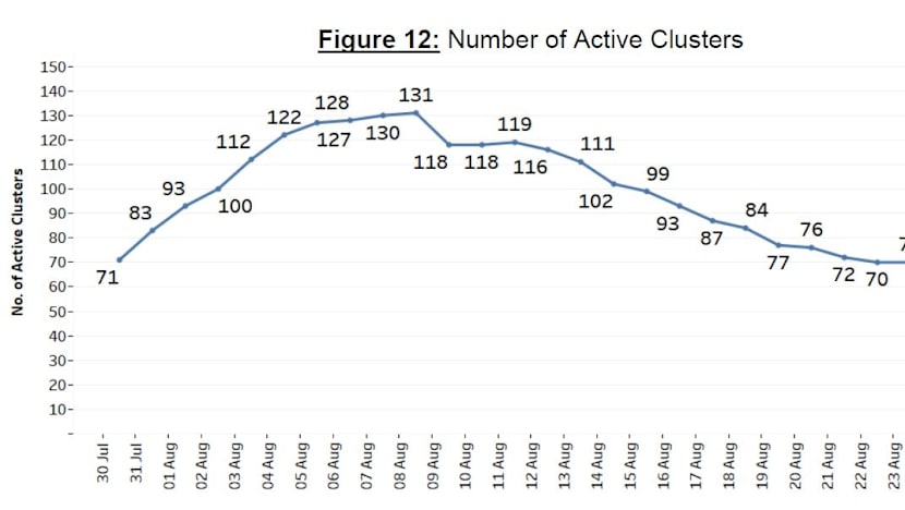 Four clusters have been closed and there are now 66 active Covid-19 clusters here, each having between three and 1,155 cases.