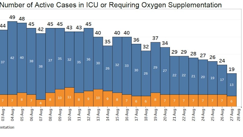 There are 13 patients who are in serious condition and need oxygen support to help them breathe, down from the 17 reported the day before.
