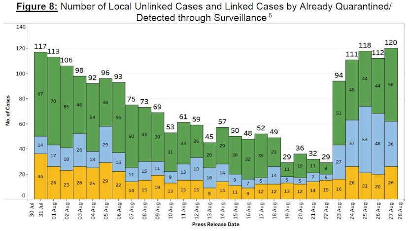 The number of cases with no known links in the community has also risen from 81 in the week before to 133 in the past week.