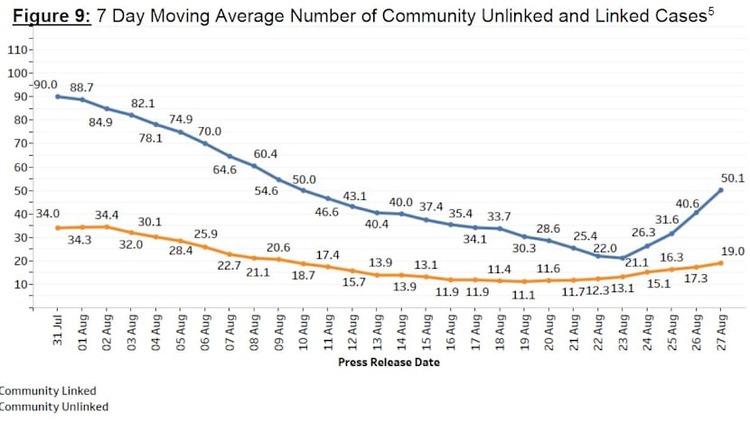 The seven-day moving average number of all linked community cases and all unlinked community cases are 50.1 and 19.0 respectively.
