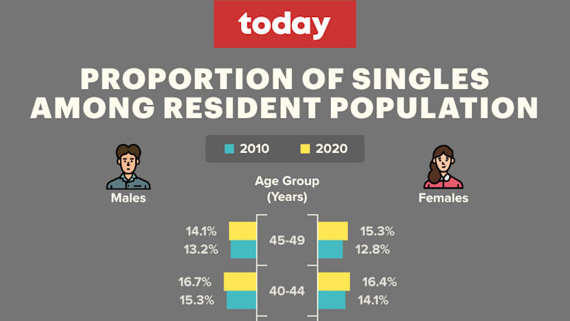 SINGAPORE — Over the last 10 years, the proportion of singles across all age groups rose in Singapore, most prominently among those aged between 25 and 34.