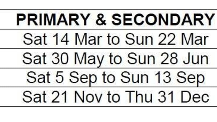 In addition, there will be three scheduled school holidays in 2020. CNA