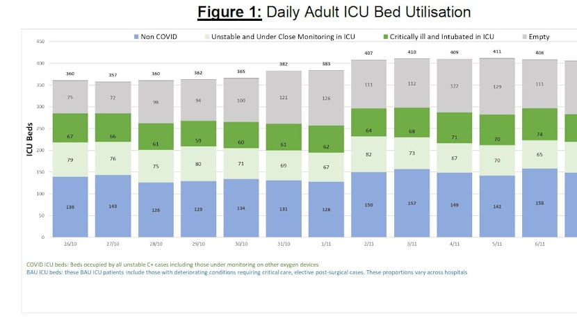 The current overall ICU utilisation rate is 68.5 per cent, down from Sunday’s 69.9 per cent.