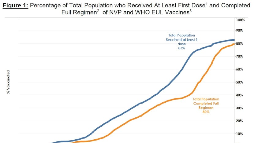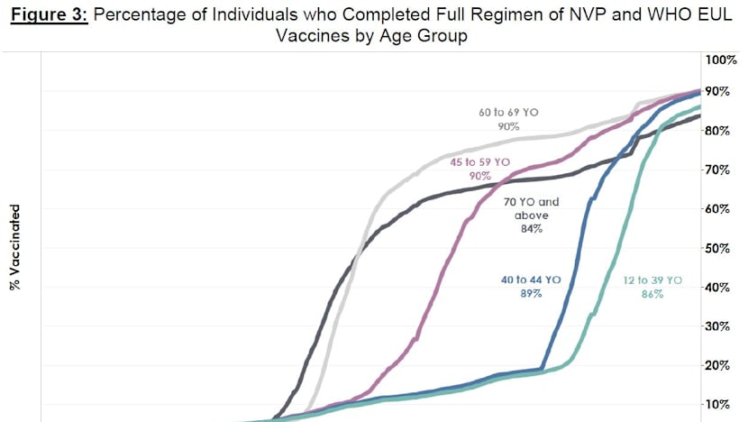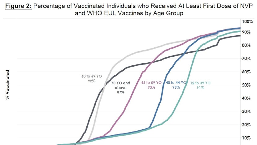 As of Aug 30, 80 per cent of the population had completed their full regimen or received two doses of Covid-19 vaccines, and 83 per cent had received at least one dose.