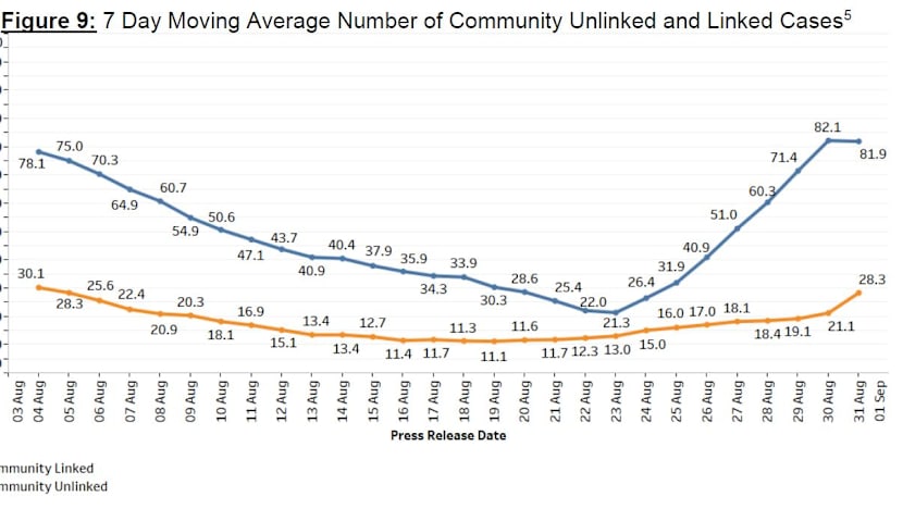 The seven-day moving average number of all linked community cases and all unlinked community cases are 81.9 and 28.3 respectively.