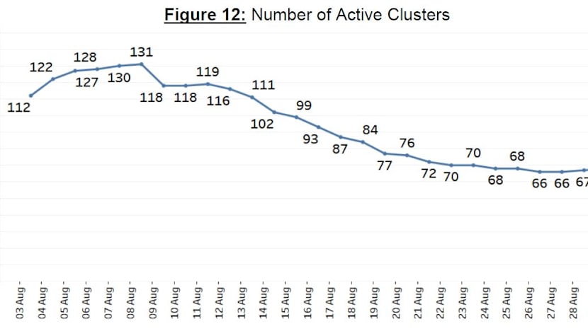 With the formation of two new clusters, there are now 70 active Covid-19 clusters here, each having between three and 1,155 cases.