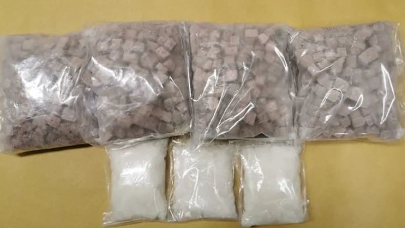 Heroin and Ice seized during the operation on the night of Feb 25, 2020. (Photo: CNB)