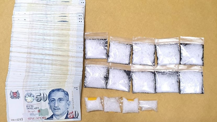 A total of about 76g of Ice, a small amount of heroin, two Erimin-5 tablets and cash amounting to S$13,230, were found within the unit.