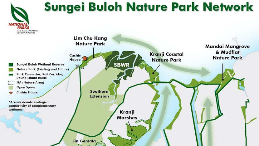The network, which was announced by NParks as part of its City in Nature vision on Wednesday (Aug 19), will comprise the Sungei Buloh Wetland Reserve and other important core habitats of biodiversity, such as the Mandai Mangrove and Mudflat as well as the Kranji Marshes.
