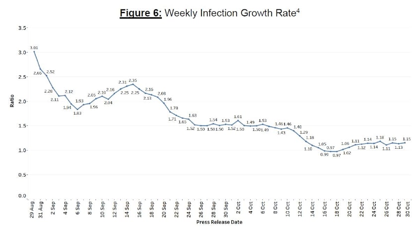 The ratio of community cases in the past week compared with the week before stood at 1.15, up from the 1.13 reported the day before.