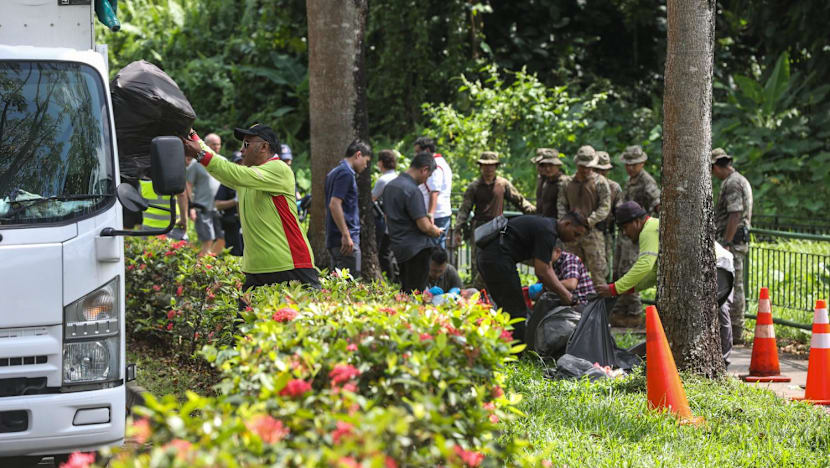 Between 11.50am and 12.30pm, TODAY spotted waste management workers removing two chairs, a mattress, a black item of luggage and a brown luggage bag from the drain, among other things.