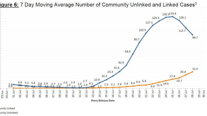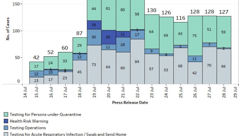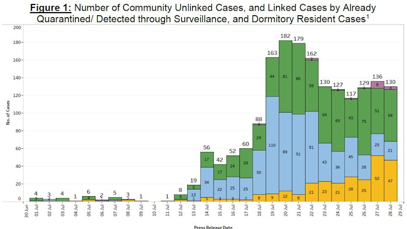 The number of cases in the community with no known sources of infection has also jumped from 45 in the week before to 217 in the past week.