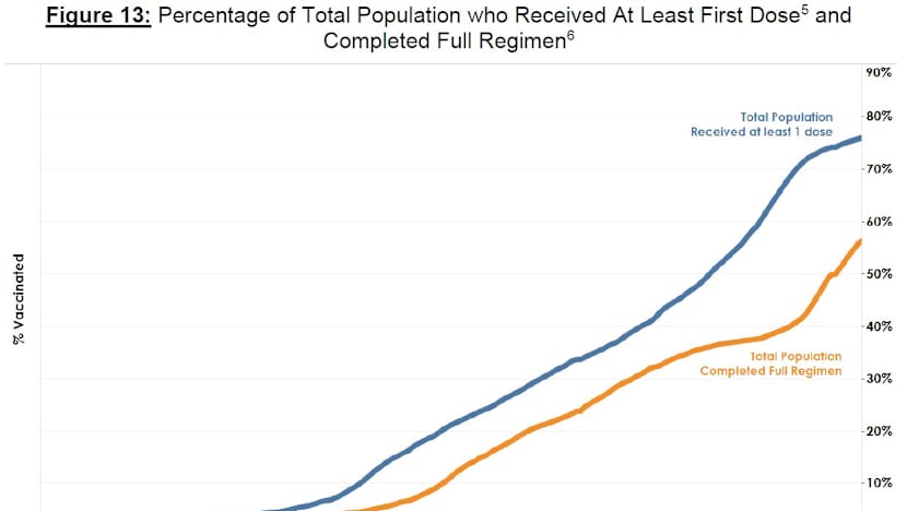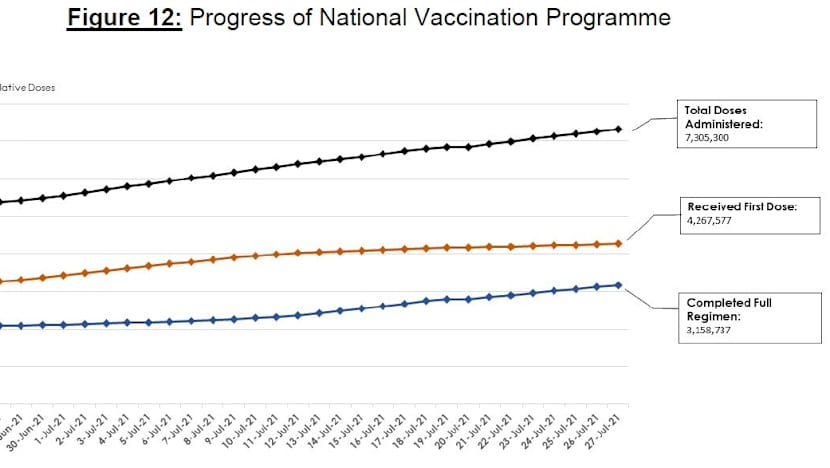 Some 3.16 million people have completed the full vaccination regimen, consisting of 121,014 recovered persons who received at least one dose and about 3.04 million who received their second dose.