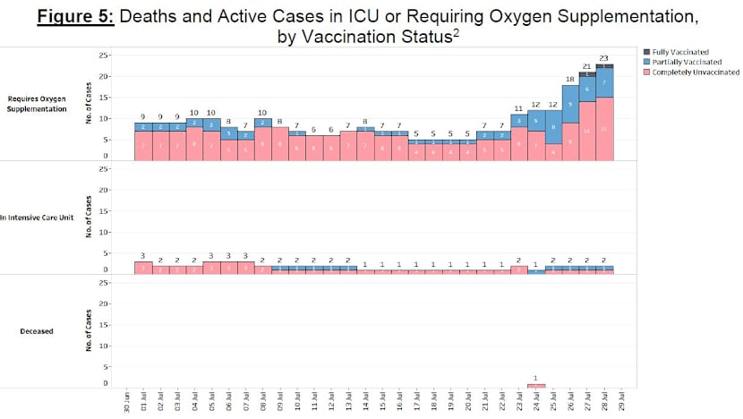 “Over the last 28 days, 31 local cases required oxygen supplementation, were admitted to intensive care units or died. Sixteen were unvaccinated, 13 were partially vaccinated and two were fully vaccinated,” the ministry said.