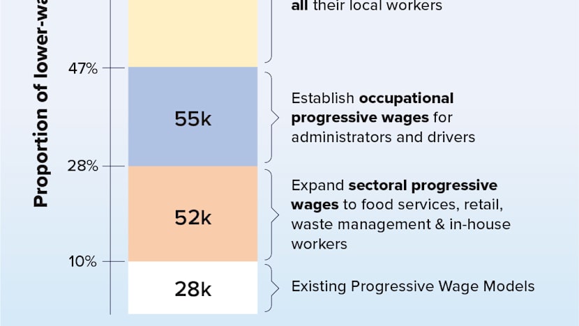 - Taken together, 82 per cent of lower-wage workers in Singapore will get some form of “progressive wages” from these moves