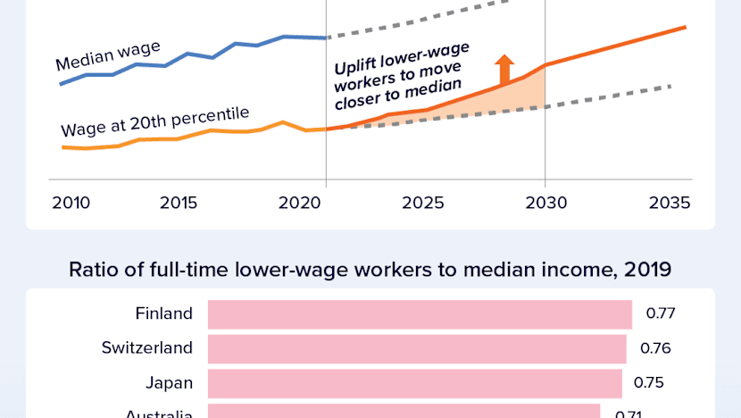 “There remains significant ground for our lower-income workers’ wages to catch up with the median workers’,” its report noted.