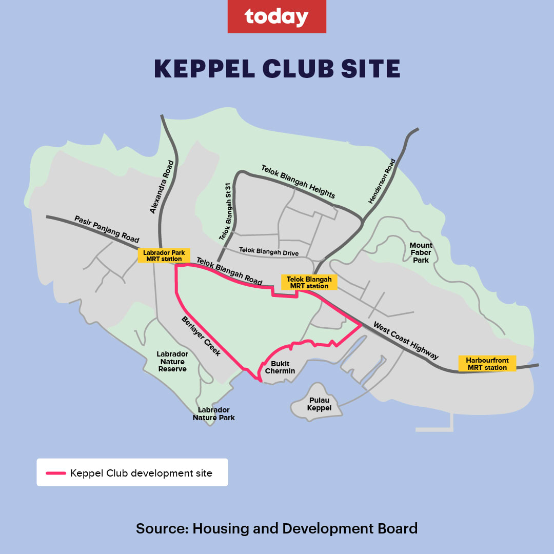 The Keppel Club site is bounded by Telok Blangah Road, Berlayer Creek and Bukit Chermin, and it has been earmarked for residential development since 2014.