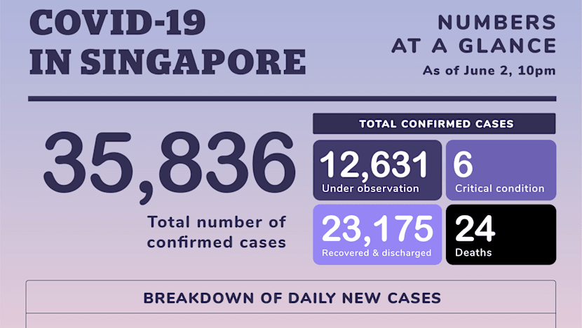 SINGAPORE — The Ministry of Health (MOH) on Tuesday (June 2) reported 544 new cases of Covid-19 in Singapore, bringing the total number of infections here to 35,836.