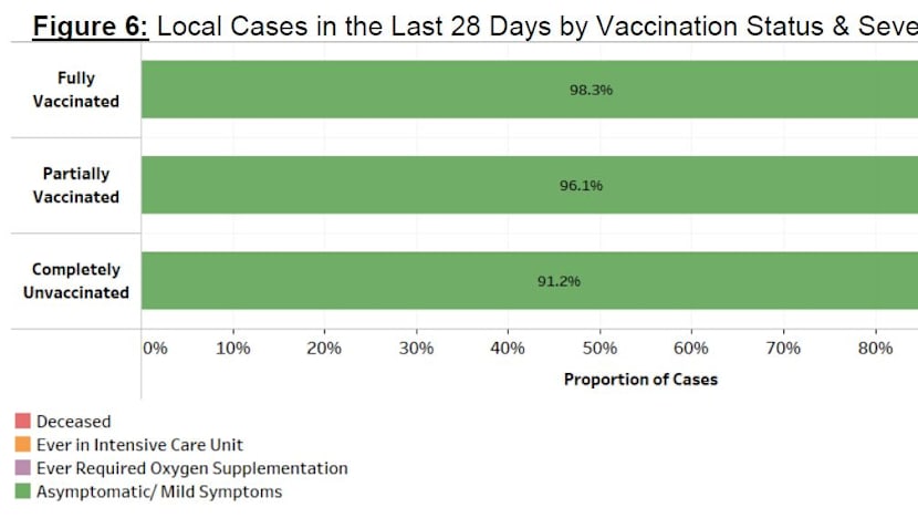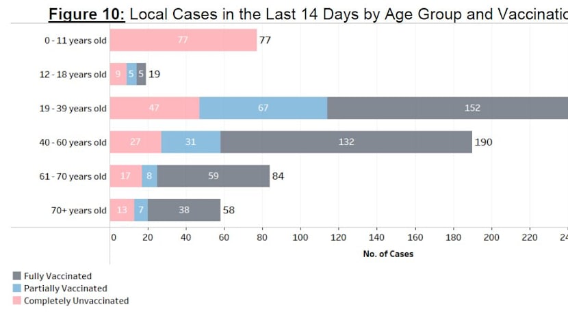 Over the last 28 days, the percentage of unvaccinated who became severely ill or died is 8.8 per cent, while that for the fully vaccinated is 1.7 per cent, MOH said.