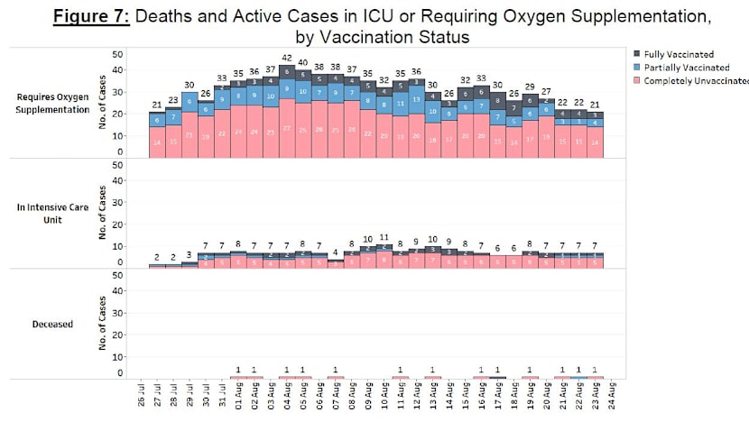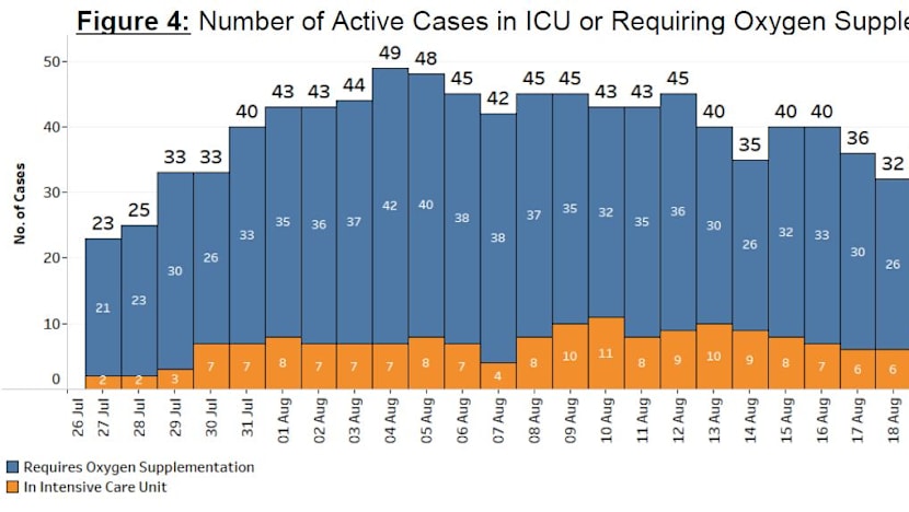 Data from the ministry showed that the number of patients who are in intensive care units (ICUs) has remained constant at seven since Aug 20.