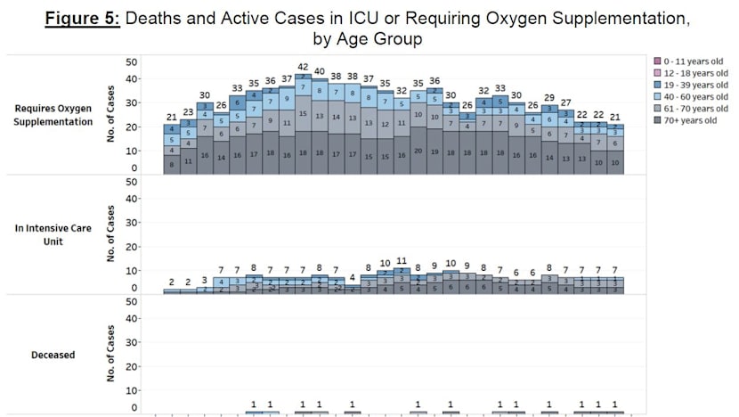 There are 21 patients who are seriously ill and need oxygen support to help them breathe, a slight dip from the 22 reported the day before.