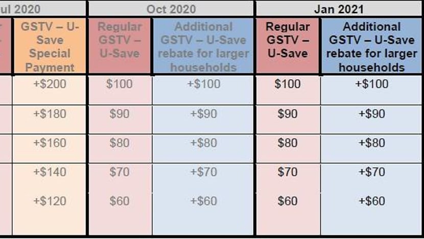 The regular U-Save rebates are disbursed every three months. The extra rebates are part of the Government's Care and Support Package announced as part of Budget 2020.