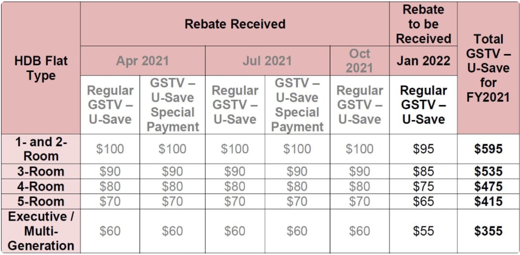SINGAPORE — About 950,000 Singaporean households living in Housing Development Board (HDB) flats will receive their quarterly GST Voucher - U-Save rebates in January.