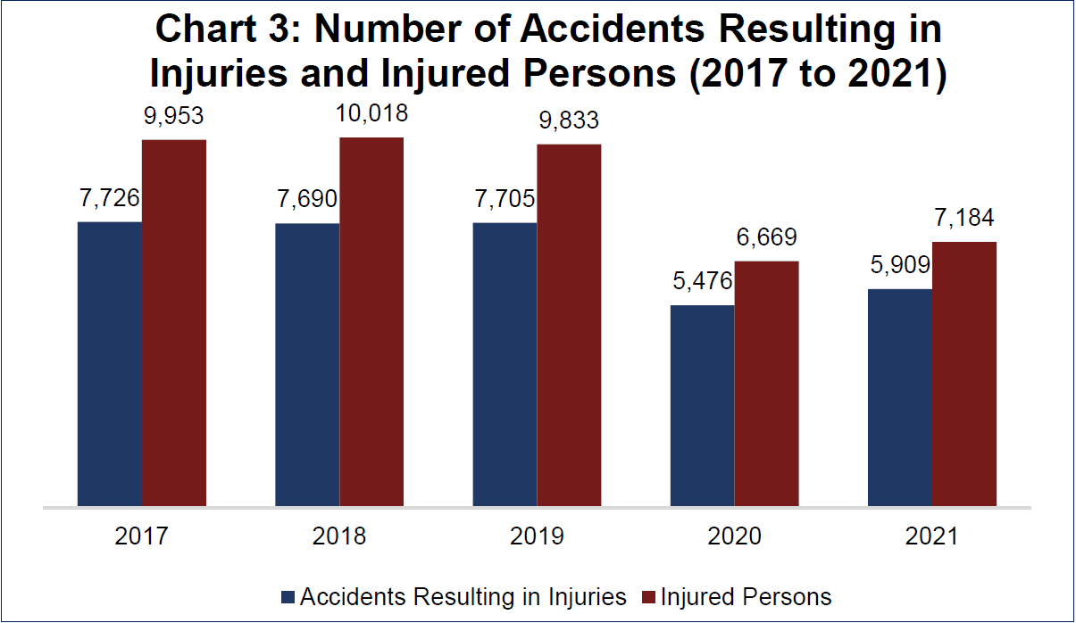 At the same time, the number of accidents resulting in injuries also increased to 5,909 cases in 2021 from 5,476 cases in 2020.