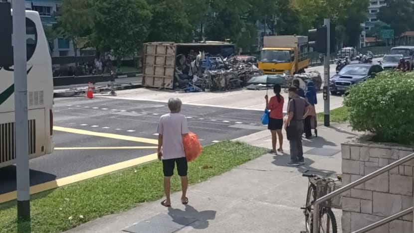 A truck involved in a road traffic accident at the junction of Pioneer Road North and Jurong West Ave 5 on Mar 25, 2022. (Photo: CNA Reader)
