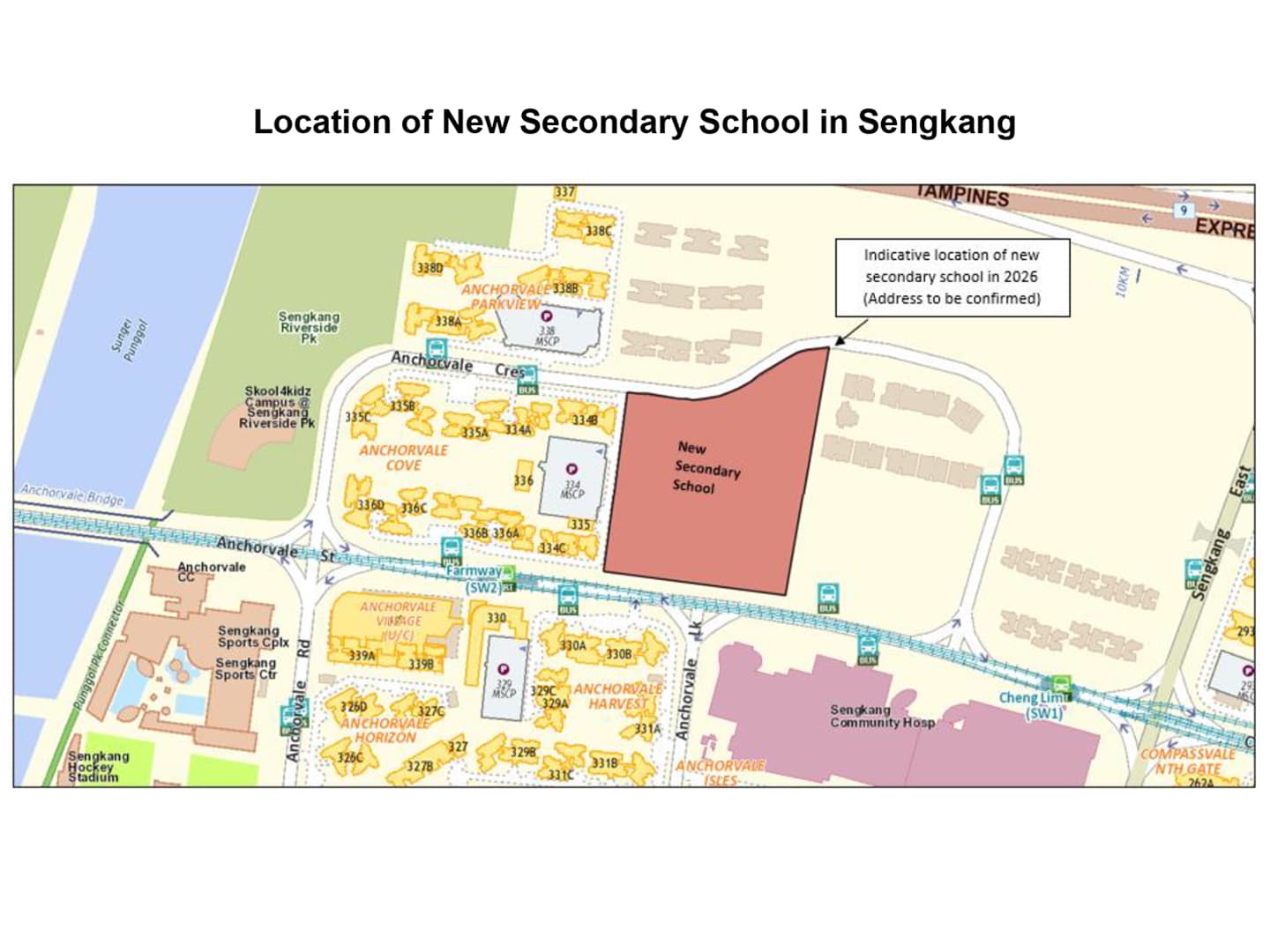 Sengkang is expected to have a new secondary school in 2026 to meet growing demand from families in Sengkang and Punggol. The name of the school will be announced at a later date.
