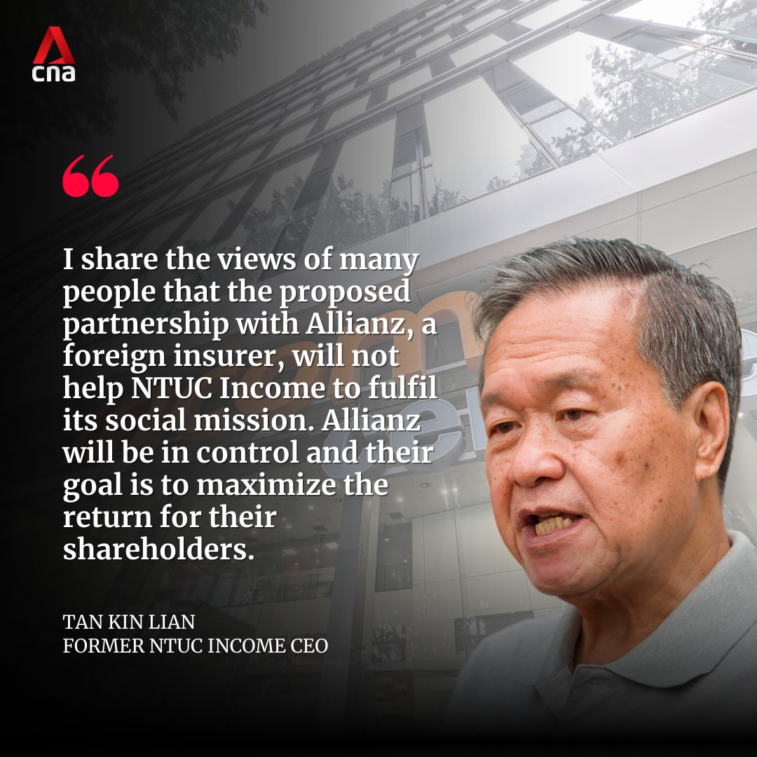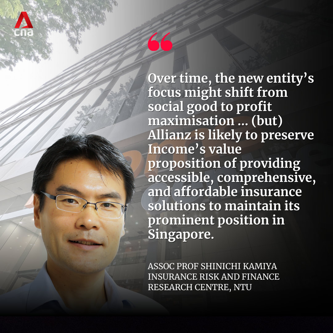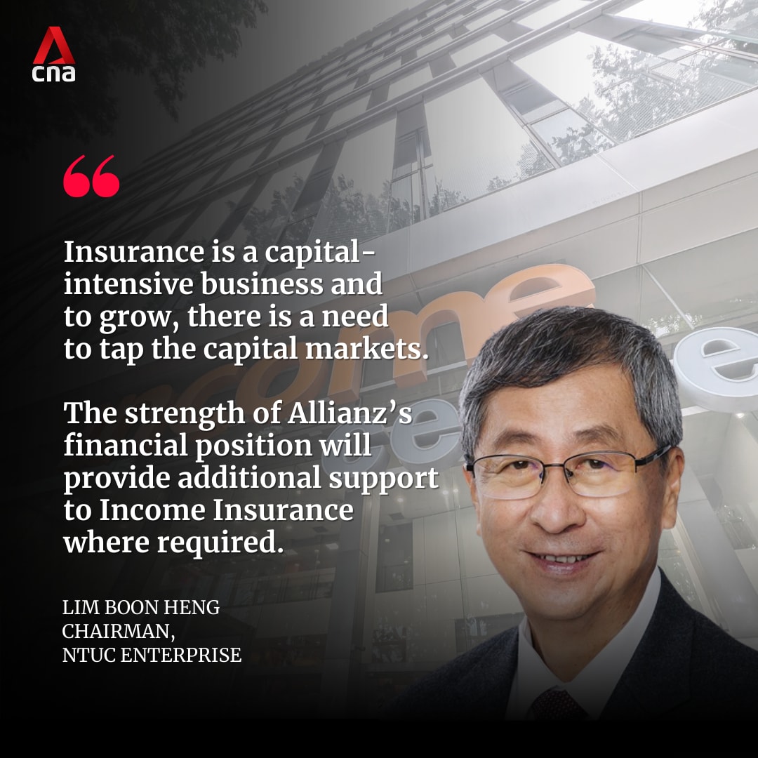 On Jul 17, German insurer Allianz announced plans to buy a majority stake in Singapore's Income Insurance for about US$1.6 billion. The deal is pending regulatory approval, but some worry that Income would stop prioritising the needs of Singaporeans, while others say the deal would help it stay competitive in the insurance sector. Here are key quotes from stakeholders and observers: