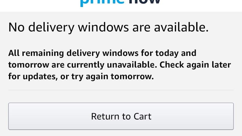 (Message shown on the Amazon Prime Now app on Friday, July 28, 2017. TODAY photo)
