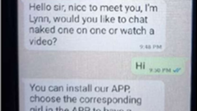 "The victims would be asked to continue the engagement on WhatsApp. The scammers would then entice the victims by asking if they would like to continue chatting via a one-to-one video call while being naked or date the girl of their choice, or to access nude videos (or) photographs of the female subjects," SPF said.