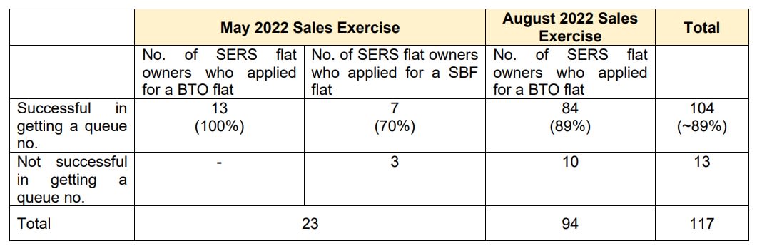 "SERS households who are not successful in the ballot can still apply for new flats elsewhere in subsequent BTO and SBF exercises or open booking with their rehousing benefits," said HDB.