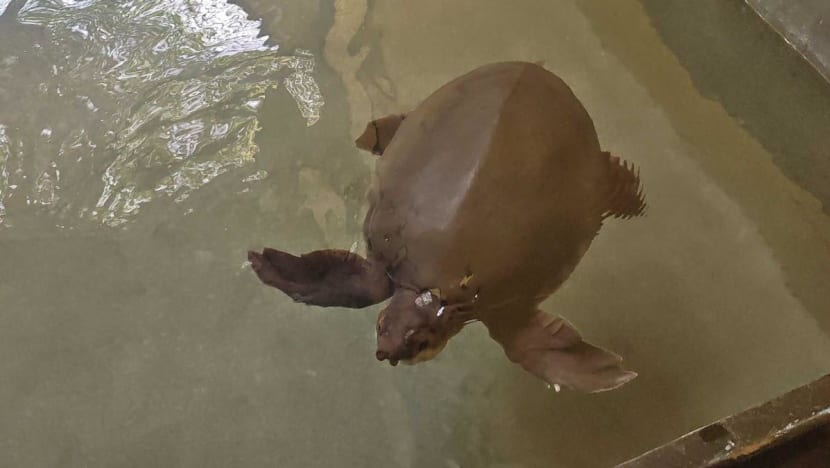 Each turtle - the size of a large dinner plate - is male and very territorial, said Mr Kalai. Each is currently housed in its own tub indoors. Staff take them out one by one for sun baths.