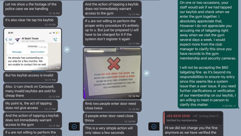 However, the manager, who identified herself as Jasmine, told Ms Ng that “the action of tapping a key fob does not immediately warrant access to the gym”, given that invalid key fobs are being sold online.