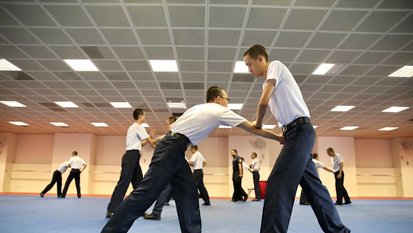 Full-time police national servicemen are seen during a training session. Photo: Koh Mui Fong/TODAY