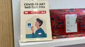 Abbott Panbio COVID-19 antigen self-test kits on display at a pharmacy in Singapore on Dec 8, 2021. (Photo: CNA/Chew Hui Min)